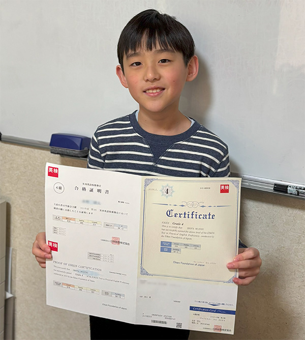 日本人講師のレッスンでは、ネイティブ講師では伝えずらい文法や単語の覚え方など日本語を使うことのメリットを十分に活かして指導します。生徒のやる気を引き出すための工夫されたレッスンを行い、中学校から始まる本格的な英語学習に向けての必要な基礎力をしっかり身につけます。学習成果を確認するために英検を受験する生徒もたくさんいます。